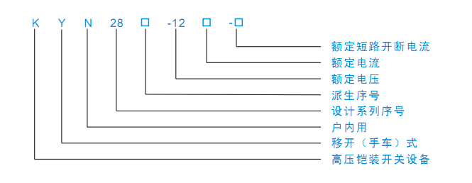 二、KYN28-12型戶內金屬鎧裝抽出式開關柜型號說明