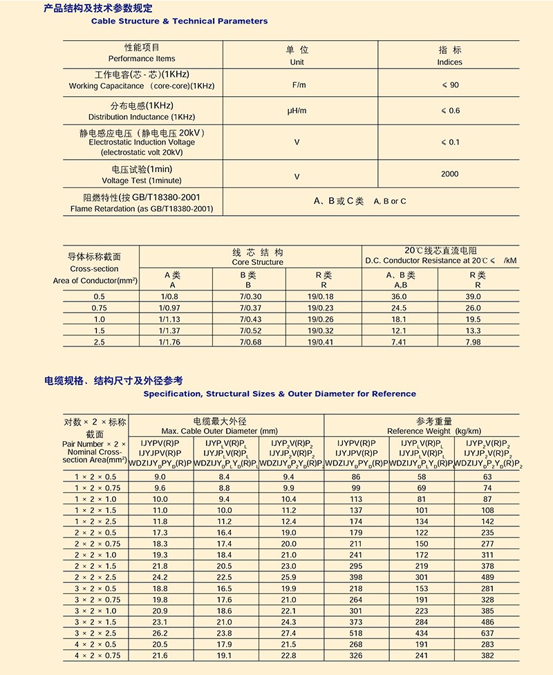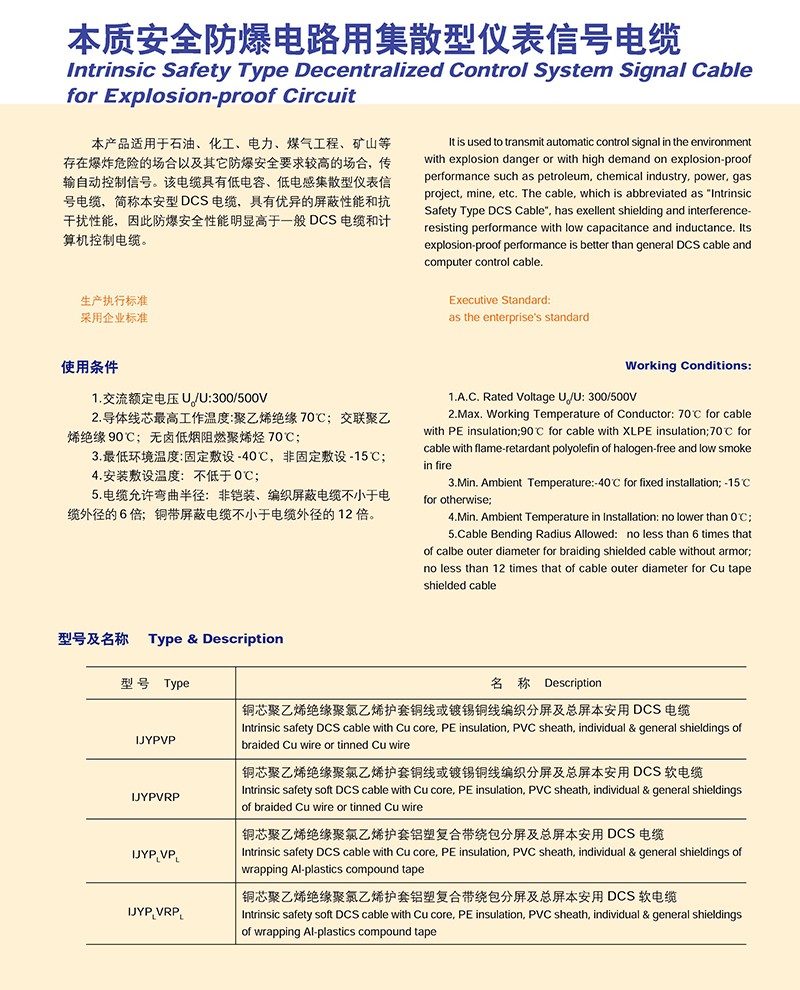 本質安全防爆電路用集散型儀表信號電纜