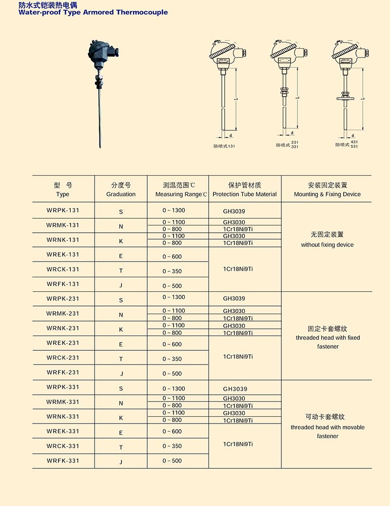 防噴式鎧裝熱電偶