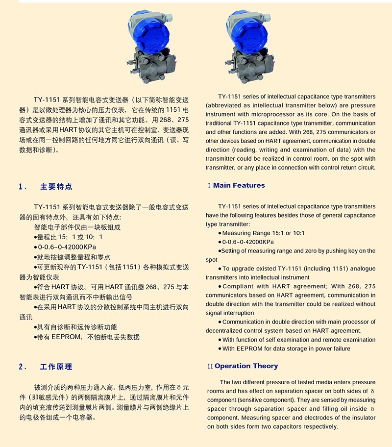 TY-1151DP/GP型帶遠(yuǎn)傳裝置的差壓/壓力變送器