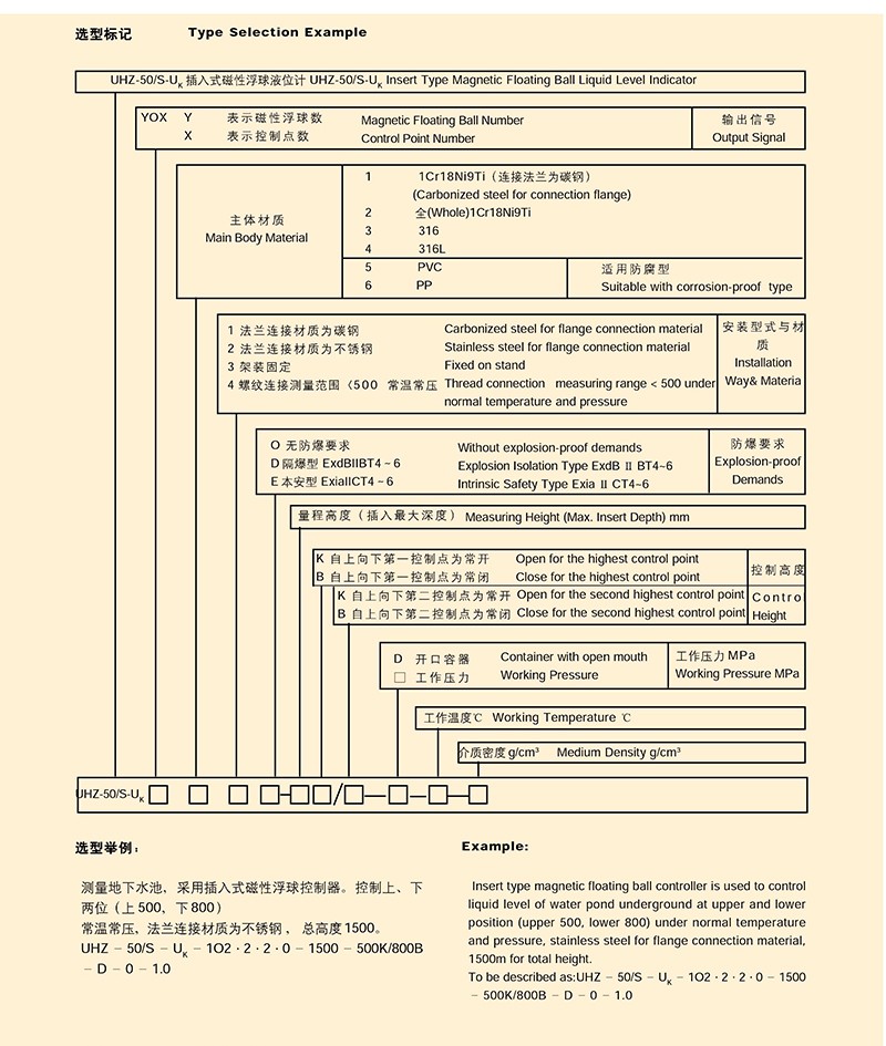 UHZ-50/D型系列頂裝式磁性浮球液位